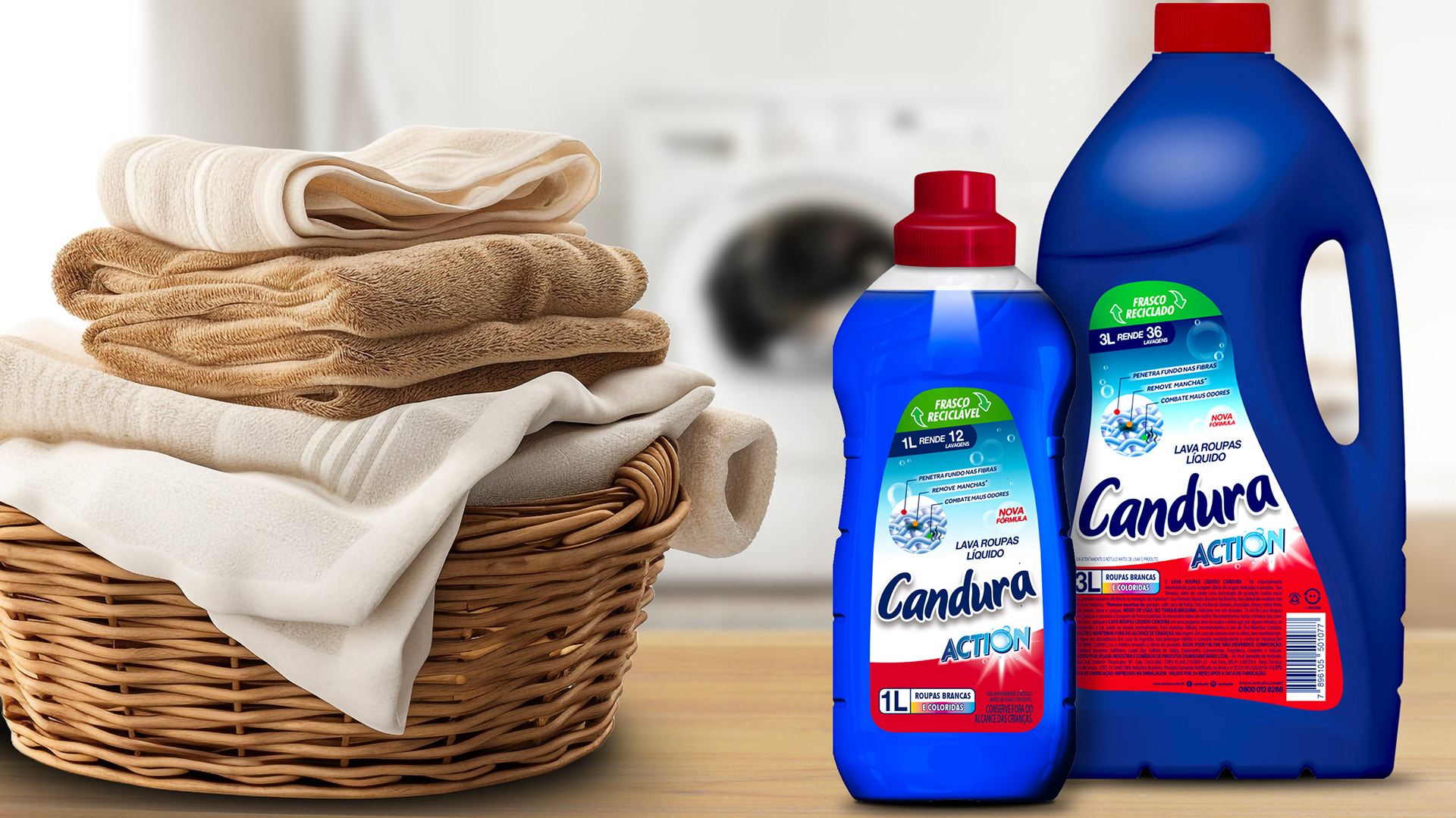 Criação de nova linha de embalagens para Lava Roupas Líquido Candura Action.